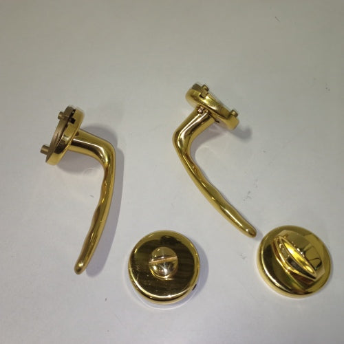 Ecost prekė po grąžinimo Hoppe 3066806 Roissy rankena, nustatyta ant apvalios rozetės, poliruoto žalvario, tualeto rankenėlės, blizgaus aukso